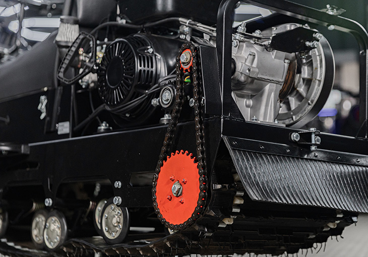 Удлинённая гусеница шириной в 500 мм не только даёт возможность с лёгкостью передвигаться в глубоком снегу, но демонстрирует отличный зацеп на любых покрытиях. Большой угол атаки гусеницы обеспечивают плавность хода и высокую проходимость Sharmax SN-480 Ultra.