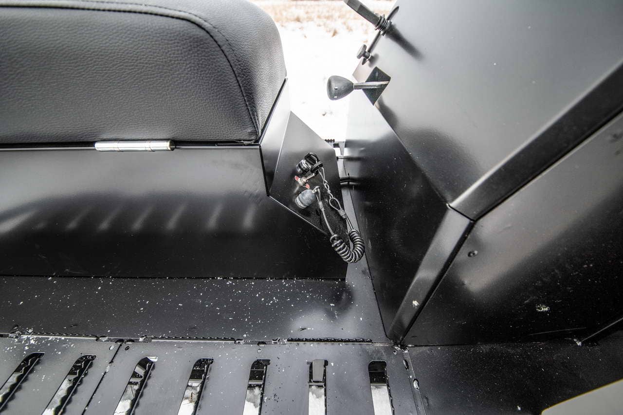 Комфортное сиденье со спинкой и вместительный багажный отсек под сиденьем водителя, а также солидное грузовое отделение делают этот снегоход удобным для длительных поездок.