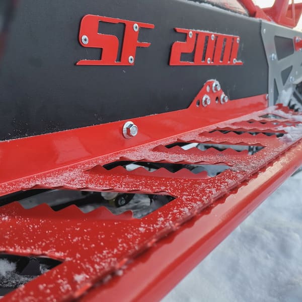 Снегокат SF200L обладает современным дизайном и удобной компоновкой для передвижения по любому заснеженной территории. Он оснащен удлиненной гусеницей 3030 мм от российского завода "Композит" с обрезиненными катками и алюминиевыми закаленными склизами. Тоннель гусеничного блока изготовлен из стали 1.5 мм с усиливающими накладками в местах наибольших нагрузок.