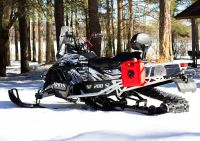 Снегоход SF200SL имеет современный дизайн и компоновку. Элементы конструкции спроектированы таким образом, что бы обеспечить комфортное передвижение по любому снежному покрытию. Подогрев ручек и курка газа, USB-розетка, панель приборов со всей необходимой информацией, электрозапуск двигателя и ручной запуск. Широкие и длинные подножки, закапотированный двигатель, двухместное сиденье, спинка для пассажира, позволяют удобно расположиться водителю и пассажиру на снегоходе. Проверенный годами эксплуатации, двигатель 180 куб.см, через клиноременный вариатор разгоняет снегоход свыше 50 км в час. Независимая передняя подвеска позволяет легко маневрировать и держать уверенно курс. В наличие задний ход.На снегоходе установленная удлиненная гусеница 3434 мм, специально созданная российским заводом «Композит». Гусеничный блок с обрезиненными катками и алюминиевыми закаленными склизами. Задняя подвеска с регулируемым ходом и жесткостью. Рама и тоннель гусеничного блока изготовлен из стали 1.5 мм с усиливающими накладками в местах наибольших нагрузок