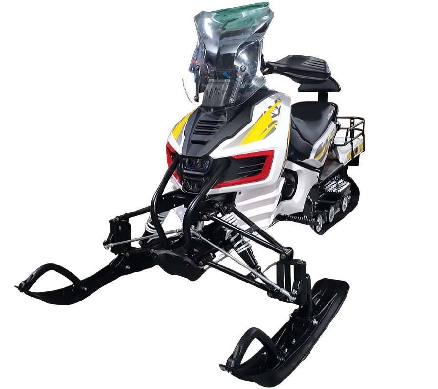 Гусеницы снегохода обладают хорошим сцеплением со снегом и обеспечивают безопасность райдеру. Особенно это важно, когда речь идет о подъемах по заснеженным тропам. На снегоходе установлены: