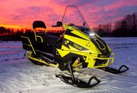 Гусеницы снегохода отличаются четким сцеплением со снегом и обеспечивают безопасность райдеру. Особенно это важно, когда речь идет о подъемах по заснеженным тропам. На снегоходе установлена: передняя подвеска — рычажная с амортизатором.