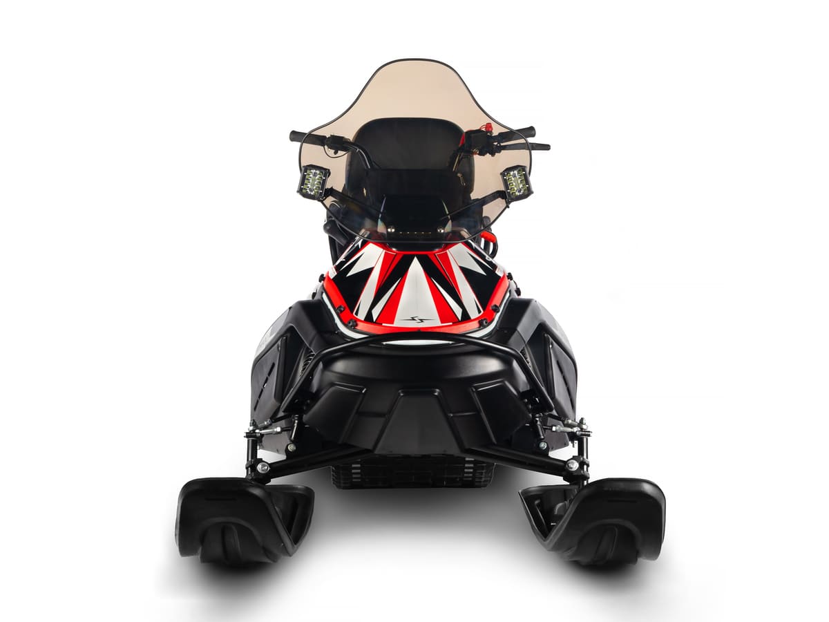 Снегоход SHARMAX SHP-680 Luxe PRO оснащён яркой светодиодной фарой и лентой на передней части снегохода, что обеспечивает впечатляющий уровень освещённости в тёмное  время суток. Гидравлическая тормозная система с 120-миллиметровым тормозным диском и увеличенным суппортом повышенной эффективности даст возможность остановить снегоход на крутом склоне.