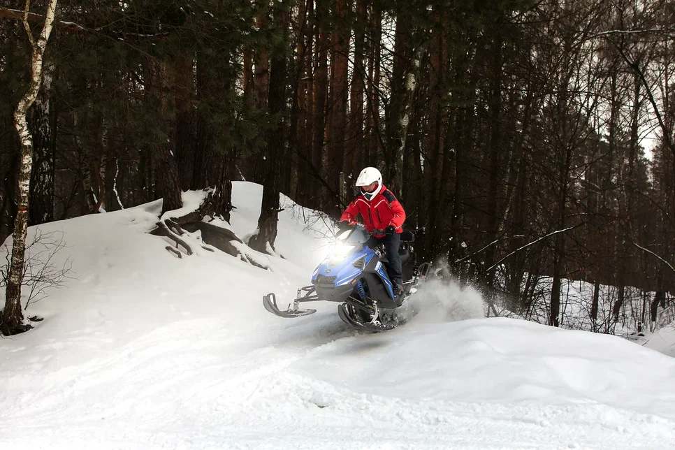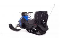 Длинная и в меру широкая резинотканевая гусеница с повышенным грунтозацепом создает большое пятно соприкосновения с поверхностью и в разы увеличивает проходимость снегохода. Совокупность этих факторов позволяет без риска перевозить двоих пассажиров и груз до 170 кг. под наклоном до 35 градусов. Сзади есть мощный фаркоп с возможность транспортировать до 300 килограммов груза.