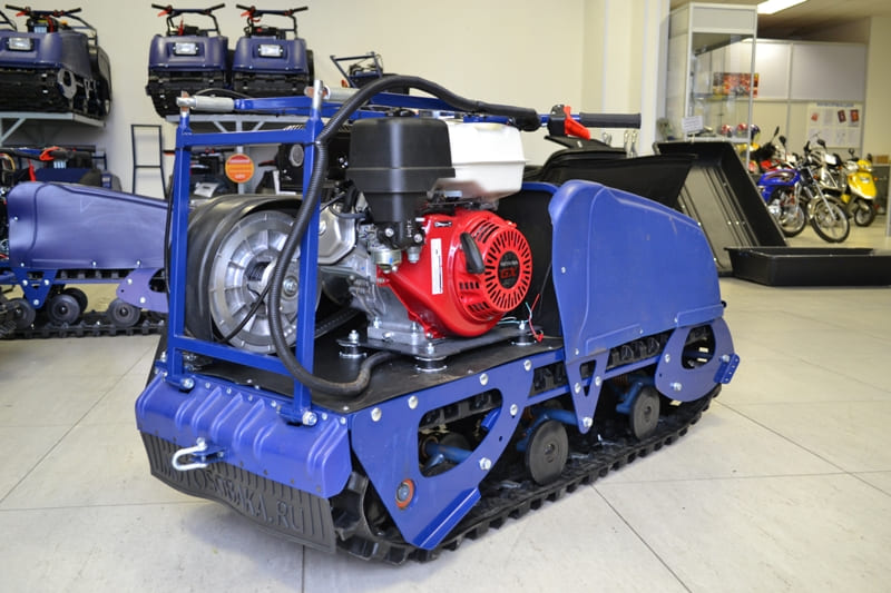 Модель оснащена гусеницей шириной 500 мм. Гусеница мотобукса оснащен высоким грунтозацепом среди буксировщиков на рынке, обеспечивает максимальную проходимость. Кроме того, имеет грунтозапы препятствующие боковому скольжению, что незаменимо при движении вдоль склонов.
