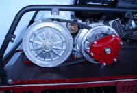 Рама у буксировщика открытая, что влияет на выброс снега. Двигатель и трансмиссия интегрированы на одной подмоторной плите, что позволяет точно выставлять шкивы относительно друг друга, вследствие чего устраняется перекос ремня вариатора. Прочная стальная рама, каркас безопасности и металлический капот надежно защищают силовую установку мотобуксировщика.
