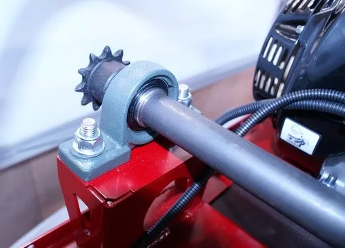 Модель оснащена гусеницей шириной 500 мм. Гусеница в сочетании с катковой подвеской способна проходить спокойно по льду и даже по территории без снега. Установлена цепь Ditton (Латвия), натягивается натяжным роликом.