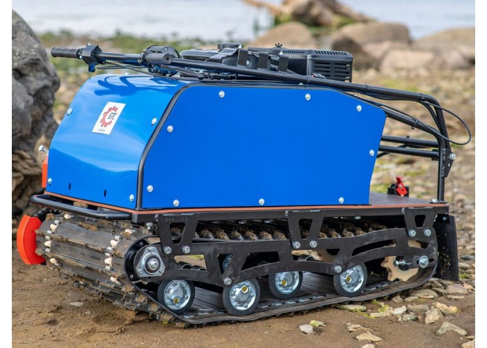 Имеется гусеничный движитель на балансирах катков с резиновым ободом и обслуживаемым полузакрытым подшипником. Также установлен передний балансир катков 4-х пружинный, средний и задний 2-х пружинный. На буксировщике установлена мощная светодиодная фара (12 SMD 36W) 1320 Lm. Роликовый натяжитель цепи упрощает натяжку цепи без снятия облицовки.