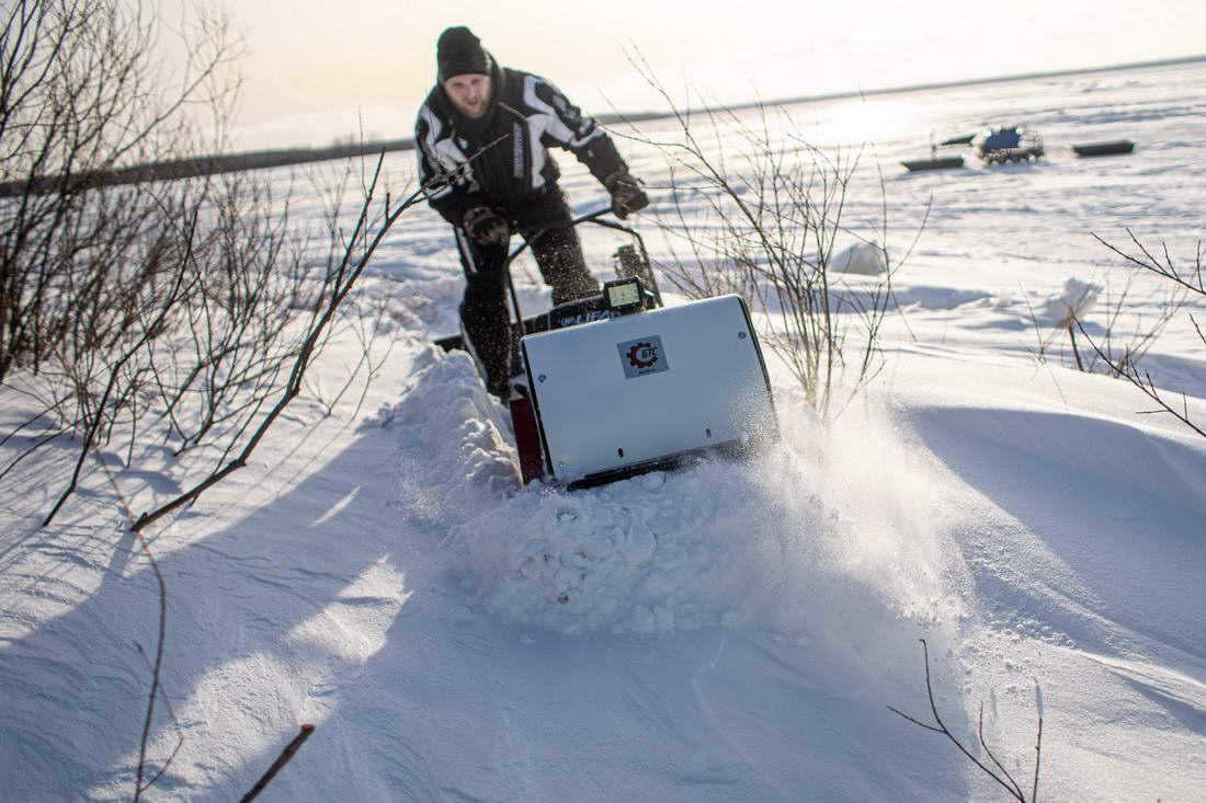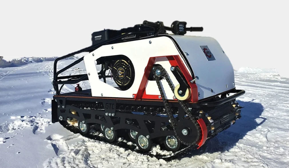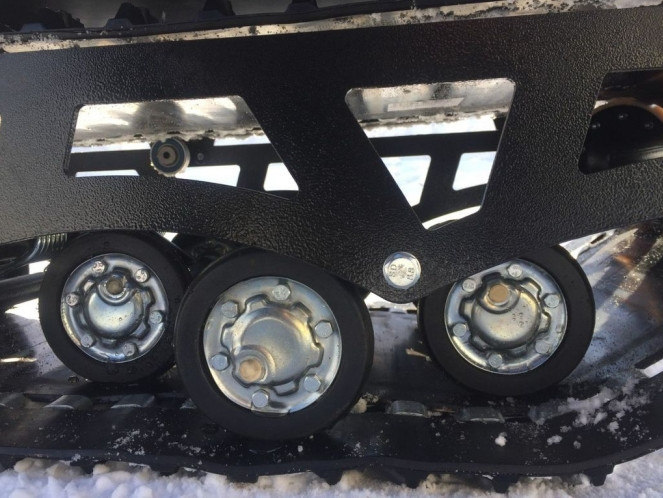 Модель оснащена гусеницей шириной 500 мм. Гусеница в сочетании с катковой подвеской способна проходить спокойно по льду и даже по территории без снега. Установлена цепь Ditton (Латвия), натягивается натяжным роликом.
