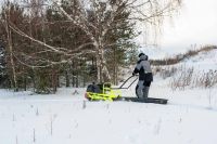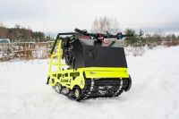 Собран на базе гусеницы шириной 500 мм. Оборудован вместительный багажник, в котором располагаются инструменты и прочие вещи. Комплектуется светодиодной фарой, защитой цепи, брызговиком и отбойником. Аккумуляторная батарея не включена в базовое оснащение.