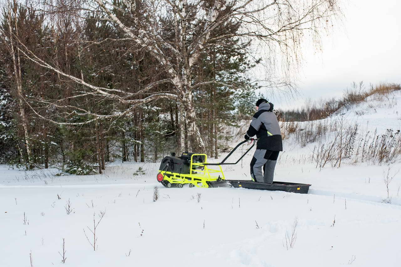В основе техники лежит четырехтактный бензиновый мотор мощностью 15 л.с. Трансмиссия вариаторного типа "Сафари" позволяет плавно менять крутящий момент. Снабжен гнутой рамой, изготовленной из цельного листа металла. Силовая установка размещена спереди для повышения проходимости агрегата. Катковая подвеска подходит для перемещения по любому покрытию. Предусмотрена возможность регулировки угла атаки.