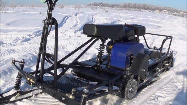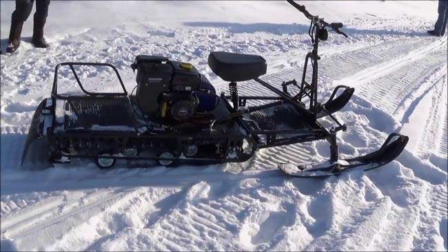 Мотобукс весит 75 кг, а размеры его составляют 110 см в длину, 49 см в ширину и 62 см в высоту. Модель оснащена гусеницей шириной 500 мм. Гусеница в сочетании с катковой подвеской способна проходить спокойно по льду и даже по территории без снега.
