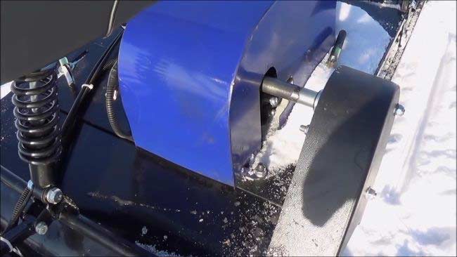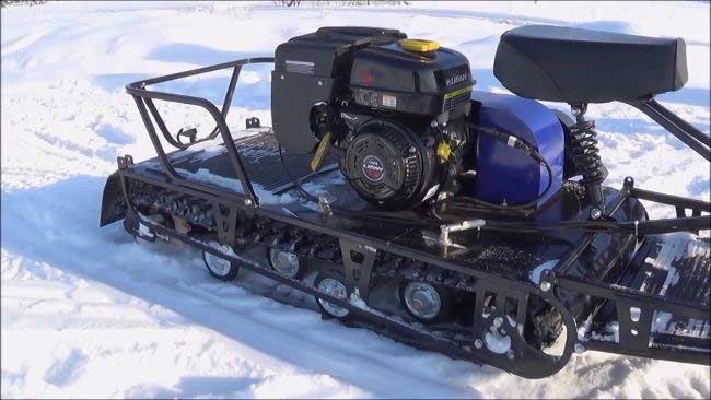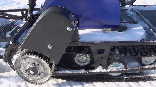 Мотобукс весит 100 кг, а размеры его составляют 185 см в длину, 60 см в ширину и 75 см в высоту. Модель оснащена гусеницей шириной 500 мм. Гусеница в сочетании с катковой подвеской способна проходить спокойно по льду и даже по территории без снега.