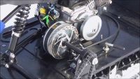 Мотособака оснащена 4-х тактным двигателем мощностью 8 л. с., достигающий максимальную скорость до 30 км/ч. Это позволяет быстро перевозить общий груз до 150 кг в санях. Объем двигателя составляет 230 кубов.