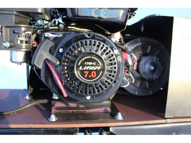 Мотособака оснащена 4-х тактным двигателем мощностью 6,5 л. с., достигающий скорость до 40 км/ч. Это позволяет быстро перевозить груз до 450 кг в санях и на специальной багажной площадке мотобуксировщика. Объем двигателя составляет 196 кубов.