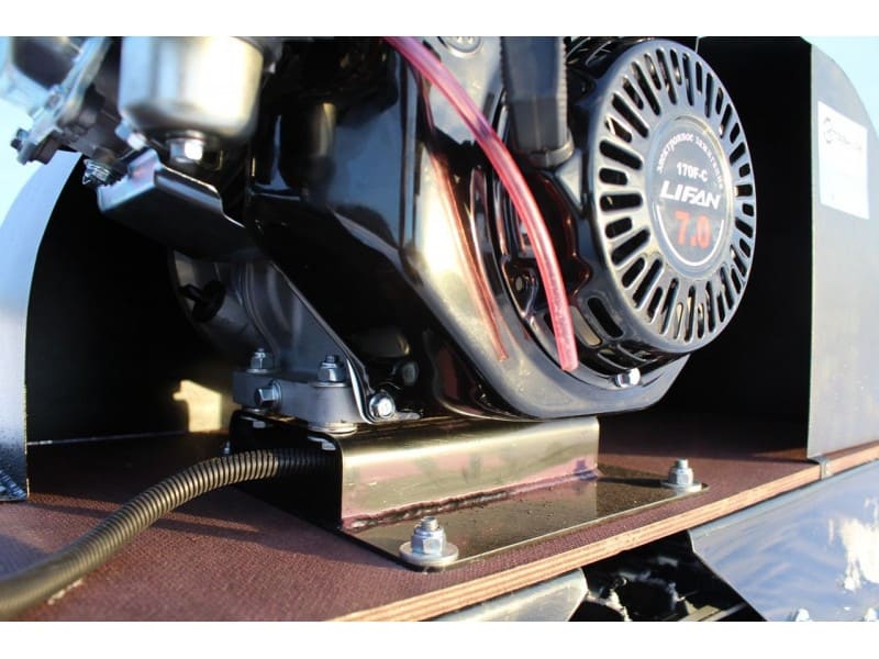 Катковая подвеска упрощена и не дает гусенице забиваться снегом. Также на данном мотобуксировщике установлены обрезиненные катки с сальниками и ведомая звезда, которая самоочищается от снега и льда.