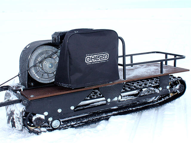 Буксировщик оснащен 4-х тактным двигателем мощностью 15 л. с., достигающий скорость до 40 км/ч. Это позволяет быстро перевозить груз до 250 кг в санях и на специальной багажной площадке мотобуксировщика. Объем двигателя составляет 420 кубов.
