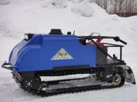 В транспортном положении (со сложенным рулем) мотобуксировщик очень компактен и помещается в багажник автомобиля. Для перевозки в машине буксировщик можно поместить в стандартные сани-волокуши. При этом растаявший снег останется в волокуше.Масса транспортируемого груза составляет до 450 кг., из расчета 150-200 кг в одни сани-волокуши.