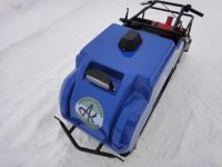 Сани-волокуши изготовлены из устойчивого к износу, прочного полиэтилена низкого давления и предназначены для эксплуатации при температуре до -60 градусов С. Сани крепятся к фаркопу мотобуксировщика с помощью подвижной сцепки