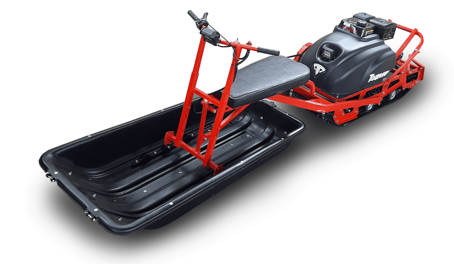 Буксировщик оснащен 4-х тактным двигателем мощностью 15 л. с. и объемом 420 кубов, достигающий скорость до 40 км/ч. Это позволяет быстро перевозить груз до 50 кг на специальной багажной площадке мотобуксировщика. Также есть возможность установить сани к мотобуксу, что позволит перевозить дополнительно до 500 кг.