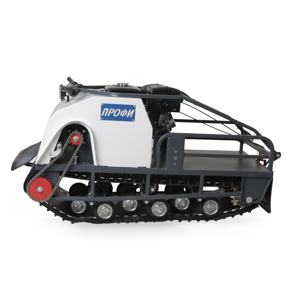Модель оснащена гусеницей шириной 500 мм. Гусеница в сочетании с катковой подвеской способна проходить спокойно по льду и даже по территории без снега.