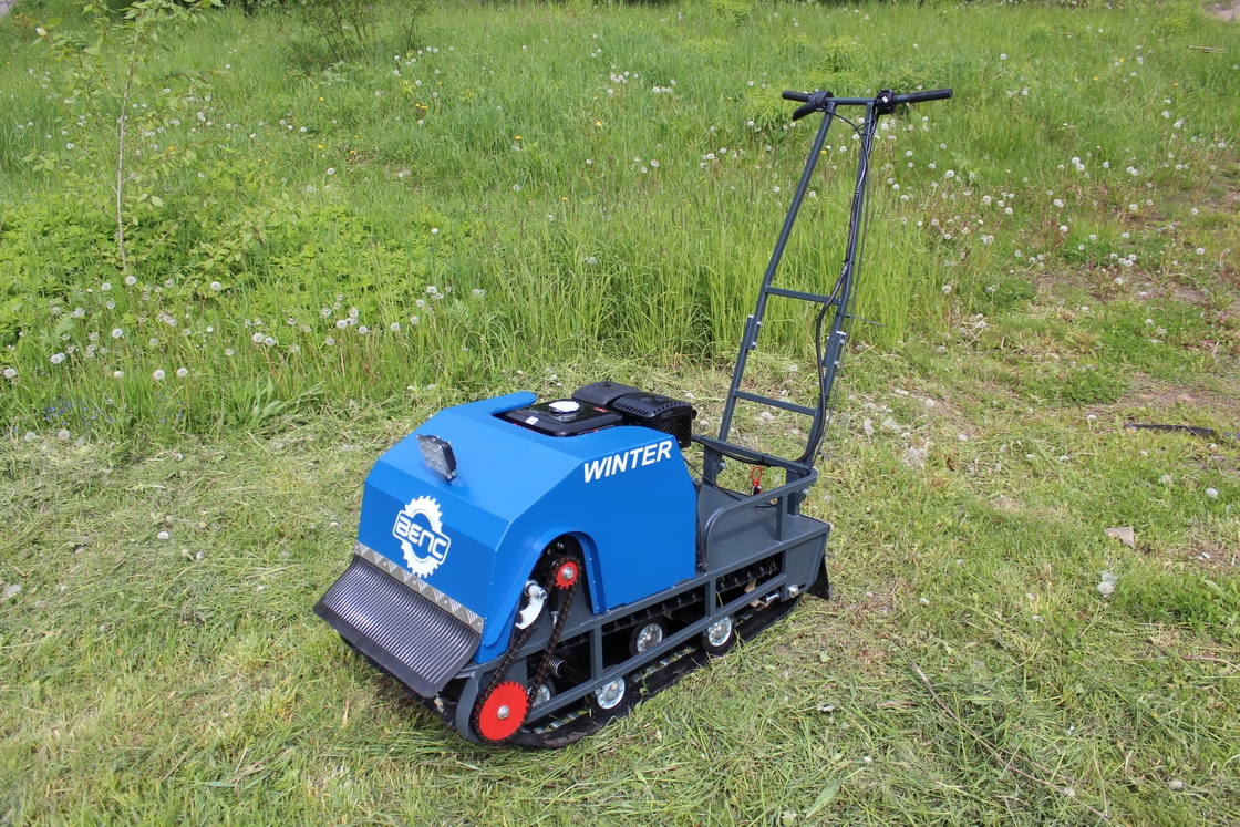 Модель оснащена гусеницей шириной 500 мм. Гусеница в сочетании с катковой подвеской способна проходить спокойно по льду и даже по территории без снега.