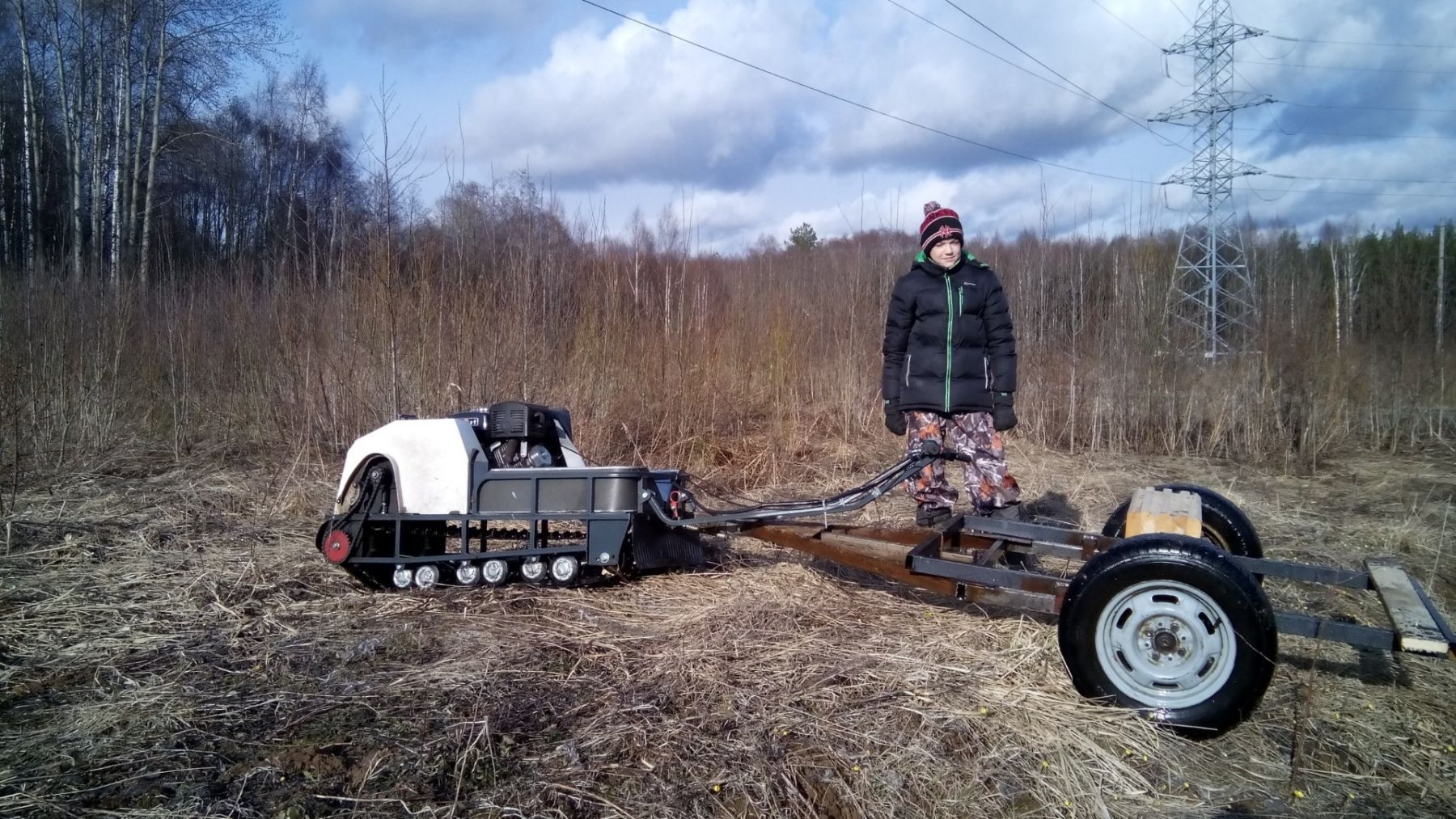 На мотобуксе установлена катковая подвеска. Катки устанавливаются на оси и предназначены для смягчения ударов и вибраций, возникающих при движении по неровной местности. Подвеска также способствует лучшей проходимости и устойчивости мотобуксировщика, обеспечивая более комфортное и безопасное передвижение как в сельской местности, так и на дорогах.
